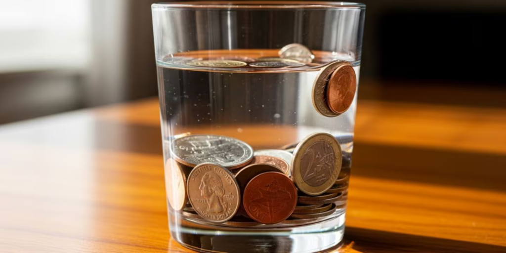 Según el Feng Shui, colocar un vaso de agua con monedas en sectores estratégicos del hogar durante noviembre atrae prosperidad, limpia energías negativas y potencia el bienestar económico.